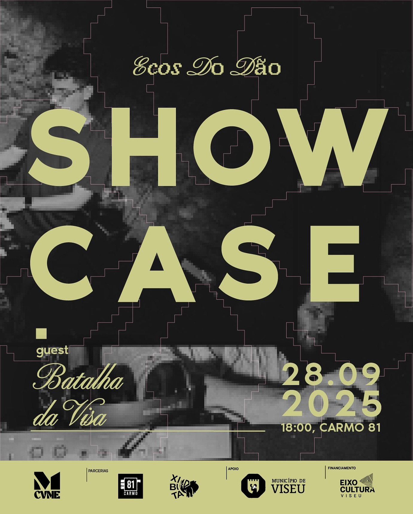 O CVME– Coletivo Viseense de Músicos Emergentes está de volta com mais um ShowCase, resultado da segunda residência artística Ecos do Dão. Dia 28 de setembro, no Carmo’81, pelas 18 horas, celebra-se a criatividade com os talentos de Bluster, Rafael Albuquerque e Inês Torres. Viseu respira talento, e a prova disso será também a participação dos MCs Duxx, Covas, 2-T, SuperNinjaBoy, Props e Beni (Host), representantes do projeto Batalha da Visa.